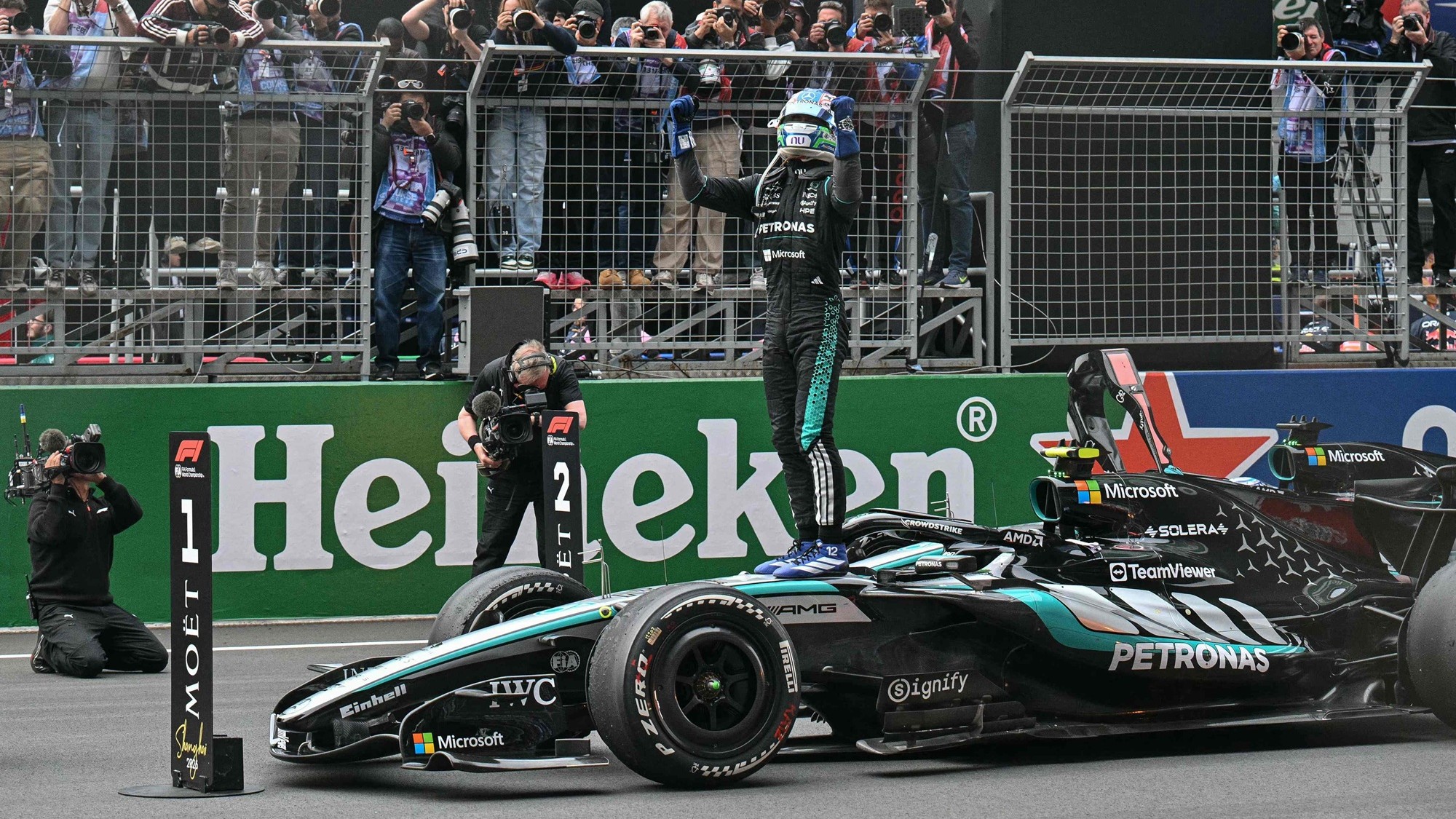 Drugo mjesto pripalo je njegovom momčadskom kolegi Kimiju Antonelliju, dok je treći kroz cilj prošao Charles Leclerc.