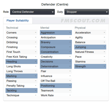 If you combine this attribute with Strength, Marking and particularly Aggression and Bravery, you'll have a great defender on your hands. Essential for defenders and battling defensive midfielders.