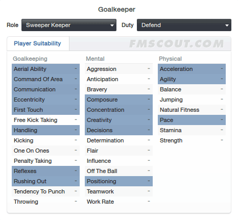 How good the goalkeeper is at coming off his line to react to through balls and similar situations. A goalkeeper will benefit from Pace and Acceleration here as well.