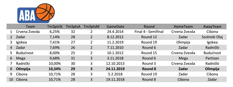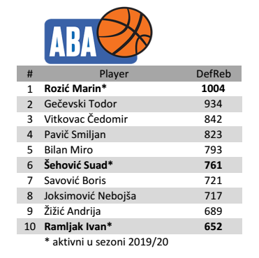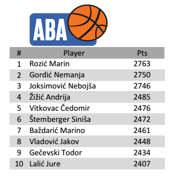 ABA liga - Statistika