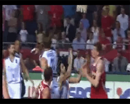 E, to je ono što pod utiskom Šarenca sa RTS-a, gotovo čitava srpska javnost navodi potpuno pogrešne primere kao dokaz sudijske lakrdije. Prema pooštrenim Fibinim pravilima, 80 odsto sudija sa međunarodnom licencom će ti reći da ovo nije obični prekršaj već namerni prekršaj! Teodosić nije nehotično udario Turčina po licu u pokušaju da mu blokira šut, već se po kretanju njegove ruke može zaključiti da mu je bila namera samo da ga udari po licu.