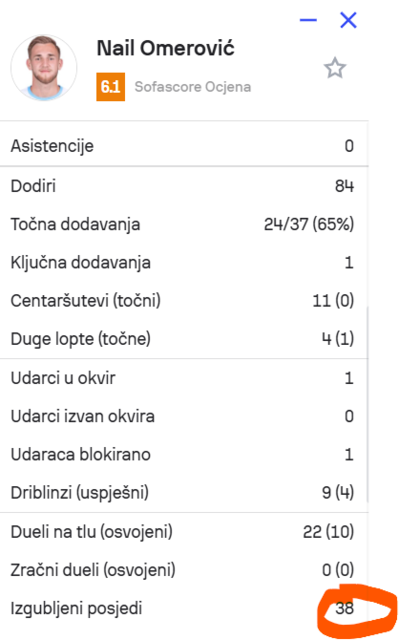 Puno toga je tu nestvarno. 0 od 11 centaršuteva, čak 9 pokušanih driblinga, 22 duela. Ispada da je igrao sam.