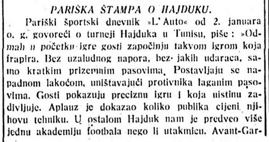 Svi u klubu su prvi izlazak Hajduka izvan granica Jugoslavije shvaćali jako ozbiljno. Prijateljske utakmice u to vrijeme, a posebno međunarodne, smatrane su iznimno važnima i najčešće su bile sve osim prijateljske. Vrijeme je to u kojem se diljem Evrope tek počinju igrati nacionalna prvenstva i to obično u formi regionalnih natjecanja pobjednici kojih bi onda igrali doigravanje za prvaka države, što je za ekipu značilo pristojan broj utakmica protiv lokalnih rivala, ali malo njih protiv ostalih najboljih ekipa u zemlji. Još uvijek nije postojalo međunarodno kontinentalno natjecanje kroz koje bi se ogledale najbolje ekipe iz različitih država. Klubovi su bili usko vezani uz zajednice iz kojih su i potekli, pa ih se smatralo braniteljima časti svojih gradova kad bi igrali s tuzemnim protivnicima ili čitave države u slučaju sudara s inozemnim rivalima. Sve to vodilo je do toga da se kroz takve utakmice stjecalo poštovanje, autoritet, ime, prestiž i nogometni ugled, pa i više od toga, sukladno čemu se često u novinama znalo opisivati ne samo igru i rezultat, nego i ophođenje igrača, ponašanje ekipe i njihovu sklonost ili nesklonost fer-pleju. Pazilo se na sve, čak i na to kako bi momčad izgledala, figurala, kako u Splitu volimo reći. Šime Poduje, primjerice, u svom tekstu za Novo Doba iz Tunisa piše: „Hoćemo da se Split s nama ponosi i zato se spremamo sasvim ozbiljno.“ Kasnije dodaje: „…Hajduci svijesni odgovornosti i svoje zadaće, pokazali su, da im ni najveće poteškoće ne mogu nauditi, pogotovo ne onda kada imadu reprezentirati svoju naciju i svoj klub.“ I: „Svaki je dao cijeloga sebe, jer je znao da se tu radi o časti Hajduka i dobrom glasu ne samo splitskog nogometa, već i sporta domovine.“