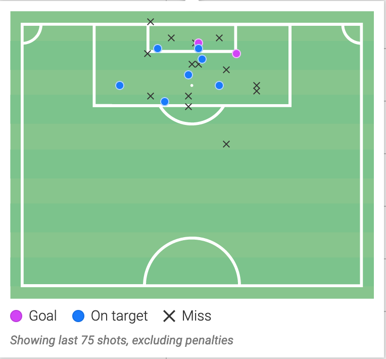 Pogledaj razliku udaraca i odaklen dolaze, Livaja ima dosta bolju zavrsnicu ne znaci da Ljubo jednog dana nece imati bolju ali trenutno je Livaja u prednosti, a broj suteva nije prava metrika za pratiti realizaciju jer kao sta vidis Livaja puca sa cijelog terena dok Ljubo puca unutar 16 uglavnom...
