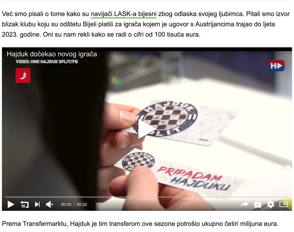 Karačićev menadžer potvrdio da bi desni bek mogao napustiti Hajduk u zimskom prijelaznom roku