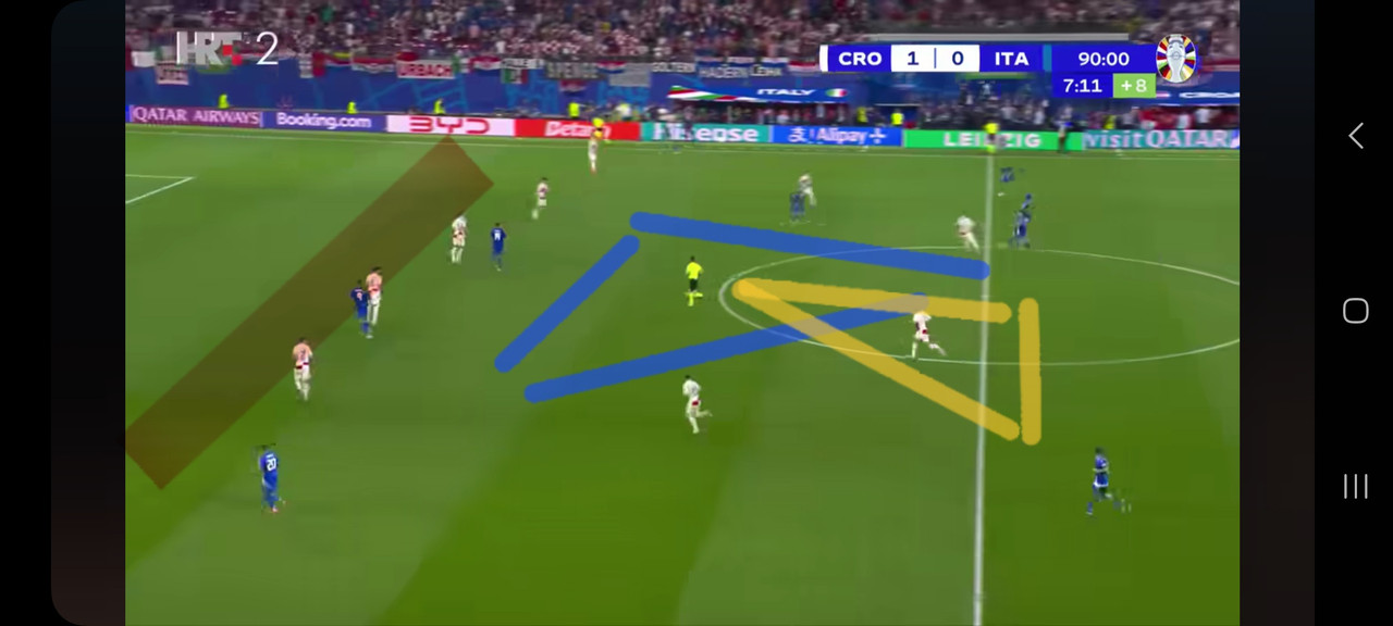 Zadnja linija odlicno stoji, 5 u liniji, po 2 igrača su u sekundi na Talijanu (ovo narančasto).