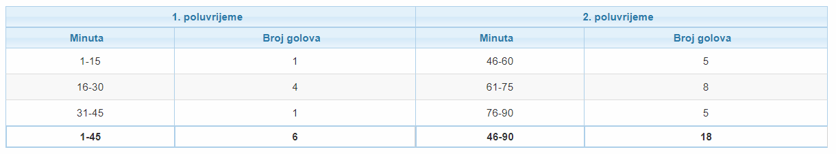 u kojim minutama smo najvise guzili