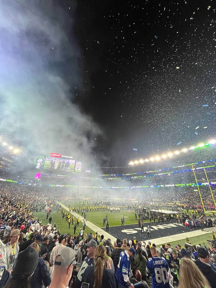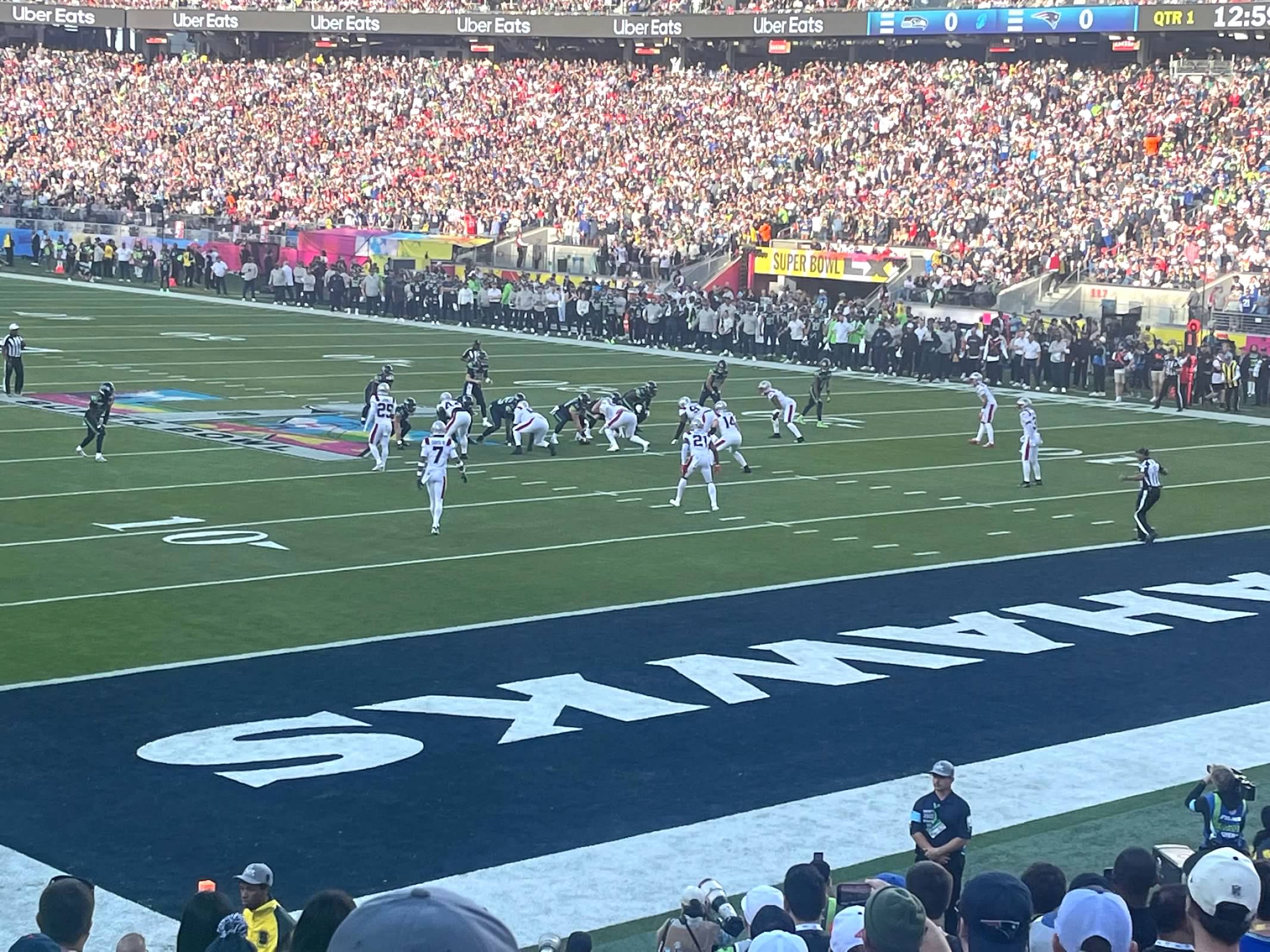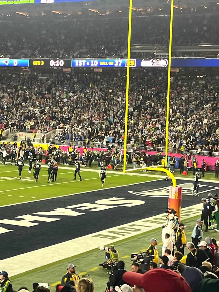 Usli smo u stadion oko 12. Utakmica je pocinjala oko 3:30. Bilo nas je sve zajedno 10. Ali nismo zajedno sjedili ali bili smo dosta blizu. Rijetko tako udjem u stadion ranije ali bilo je nekih actvities unutra ali svugdje je uglavnom red ogroman bio. Recimo bilo koja prodavnica da je prodavala stvari sa znakom Super Bowl imal je jedno 200 ljudi da cekaju da udju. Ja sam praznovjeran pa ne bi svakako ni kupio nista dok ne osvoje 😀. Mi smo uglavnom po pivama udarili jer se nije puno cekalo.