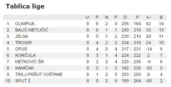 Ocekivani rezultati. Prilicno tijesno u Jelsi, mislio sam da ce tu razlika bit veca. Olimpija superiorna, jos uvijek bez poraza i u ocekivanju sutrasnjeg rezultata iz Splita