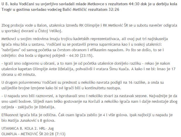 Ne želim ulaziti u probleme i uzroke poraza trenera škole rukometa Metković i Akademije jer ne mogu objektivno pričati o meni dragim mladim ljudima . Siguran sam da su rezultati njihovih ekipa ovog vikenda njima pali teže nego mnogima koji to komentiraju. Pobjede Vodica i Trogira su dokaz da zrelost, mudrost i iskustvo u svakom slučaju može nadvladati mladost ma koliko pojedinci se ne slagali s time. Ne umanjujući kvalitete njihovih suigrača ali Đelalija i Prskalo su stroj svojih ekipa kojima ostatak ekipe je benzin koji taj stroj pokreće. Neću pisati o mladićima Ivanu i Josipu Vekiću, Previšiću, Nikoliću, Čupiću, Jerkoviću, Srni, Mažurani, Piteši, Vuičeviću, Vojaku, Papiću,Šušnjari, Vuliću i ostalima, nego generalno o svim mladim igračima. Veoma lako ih se proglašava onima što još nisu postali. Šakom i kapom se dijele mišljenja da su već napravili nešto, postali netko, a bukvalno su na početku karijere. I navijači mislim na roditelje i prijatelje i treneri, suigrači i kvazi-svjetodavci u tome sudjeluju. Mladi moraju biti svjesni da ih tek čeka krvav rad da bi možda došli tamo gdje bismo svi voljeli da završe jednoga dana. Podsjetilo me to na tezu o kojoj se u posljednje vrijeme često piše pa i tu na forumu o briljantnoj generaciji rukometaša 98-99. , o inflaciji kvalitetnih mladića, dječaka, za koje se tvrdi da su buduće zvijezde (Lučin, Jaganjac, Koncul, Šarac..) u srazmjeru s kroničnim nedostatkom kvalitetnih igrača proteklih generacij. Gospodo i u ranijim generacijama su velika većina 18-godišnjaka, pa još i mlađi, bili čak i nositelji igre u nekim klubovima, a danas mnogi nisu nigdje. Preuveličava se vrijednost talentiranih mladića. Njima su potrebne zdrave sredine, razumni i mudri roditelji, istinski prijatelji i prije svega kvalitetni treneri. Ali danas je svima vlastiti interes na prvome mjestu (klubovima, upravi, trenerima, roditeljima..), načelo preskakanja u razvoju a sutra u životu, zanemaruju se one bitne stavke u razvoju mladog igrača, ODGOJ. Domino efekt je pokrenuo PPD uzimajući sve živo na tržištu, uništava male rukometno razvojne sredine i ostalo dolazi samo po sebi. Osnivanje juniorske rukometne lige je bila jedna od rijetko pametnih ideja, maksimalno konkurentna i razvojna ali ništa . Igrači, mladići bi tim modelom ostajali na zemlji, ne preskakali iz osnovne rukometne škole na fakultet , ali od ideje do realizacije je bila nemoguća misija. Metković škola rukometa i BM navodim jer su to dvije ekipe s najviše mladih igrača mahom 98 uzrasta i mlađe s perpsektivnim trenerima koji imaju kvalitetu. Lijepo je vidjeti prof. Srhoja u stručnom timu Trogira koji će vjerujem prenjeti svoje neizmjerno iskustvo i znanje na trenere i mladiće a to su stvari koje su potrebne za razvoj i napredak kluba..