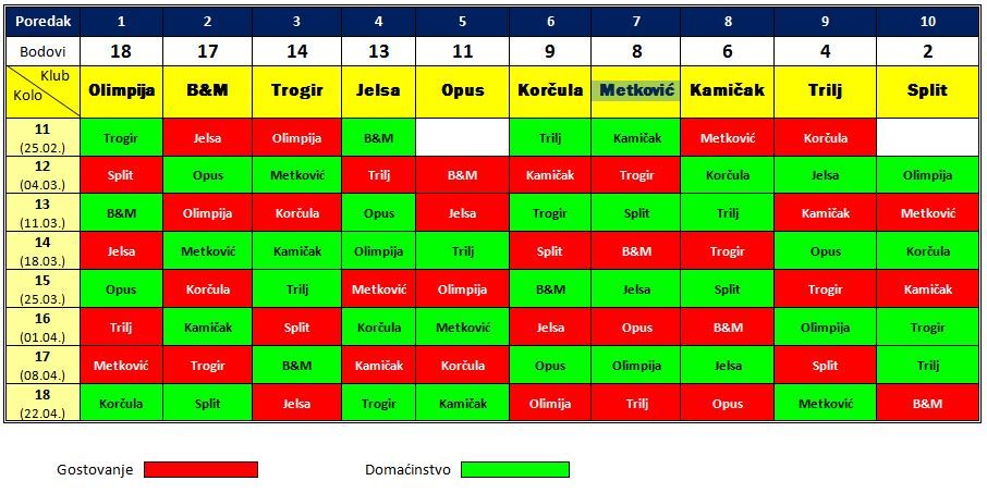 Jelsa-B&M 1-2 (50%), Jelsa kod kuće ove sezone 5 utakmica 5 pobjeda, glatko. Prošle sezone su od 10 utakmica na Hvaru izgubili samo od (sada prvoligaša) Solina i Biograda igrali nerješeno s Dubrovnikom i tijesno izgubili od Olimpije, ostalih 6 glatko dobili. Dakle skor u 2 godine, 15 utakmica-11 pobjeda -3 poraza -1 nerješeni. Domaćin koji s Gamulinom na čelu ne poklanja nikome ništa.