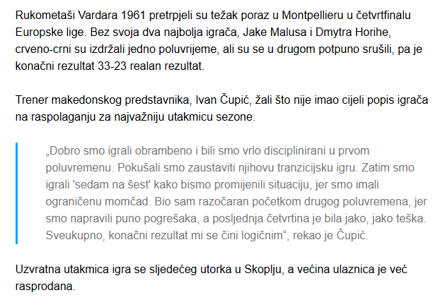 i drugi razlog je sta ekipi ko montpelier i flensburg je priotet domace lige. oni motora u el upali tek u top 16, top 8 i f4.