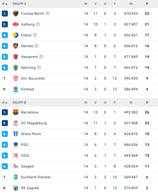 skupina a mnogu jaca od skupine b tako da pozicije 6 sporting lisabon i pozicije 3 wisla plock ne treba nitko driblati.
