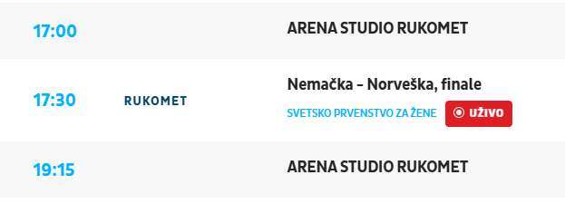 arenasport prenosi od finale 17.00 do 20.00. 30 min studio pred tekma i 45  min nakon. sigurno ce se prica i za ehf euro 2026 muskare kojoj arenasport prenosi.