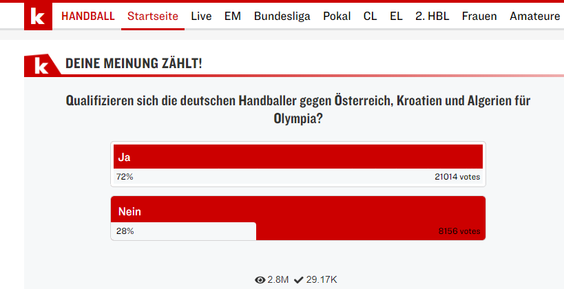 Imao veliko zaintresuvanje. 2.8 milion pregledi i skoro 30.000 odlucio se glasati 72% veruje u plasman na OI a 28% ne veruje.