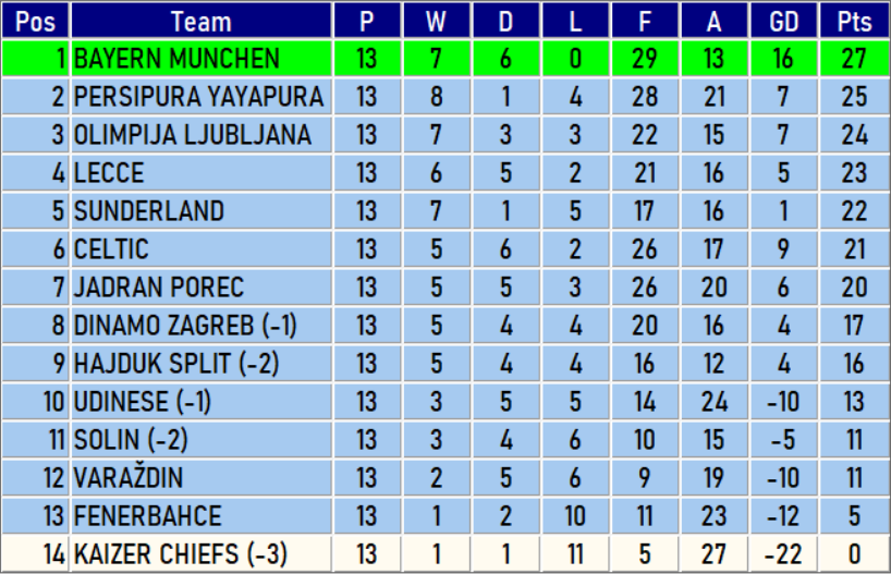3 - Crnomarković, Ziljkić (oba Olimpija), Juranović, McGregor (oba Celtic), Lepinjica, Sumić (oba Jadran), McGeady (Sunderland), Muller (Bayern), Štefulj (Dinamo Z.)