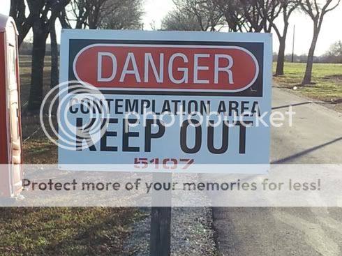 JeR ima tu netko tko zna engleski malo bolje od mene, pa da mi objasni ovaj znak kojeg sam upravo uslikao na putu s posla??  Ili je postalo opasno biti u blizini nekog tko razmišlja (s obzirom da je ovo Texas, home of Dubya Bush i Rick Perry...)?