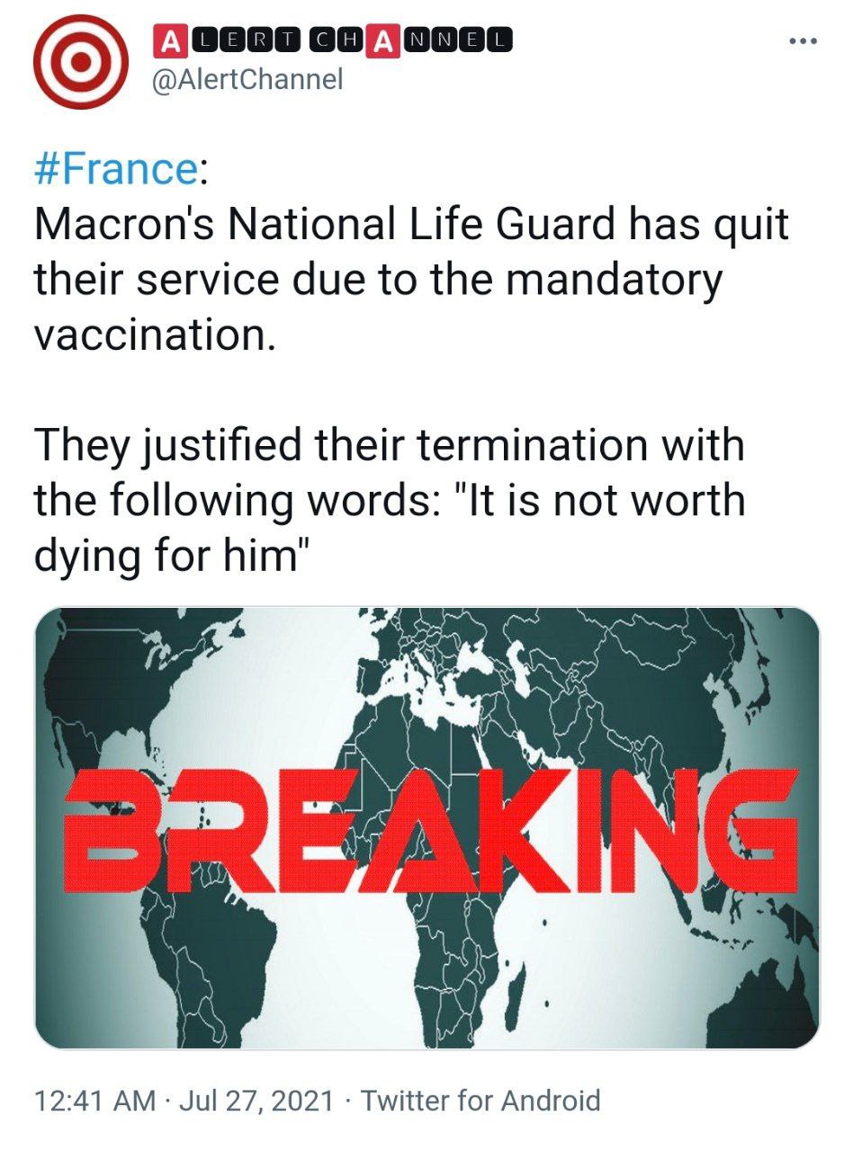 Prosvjedi protiv covid histerije su zestoki, mediji ih ne mogu vise ignorirati ali smanjice im znacaj medjutim drustvene mreze su preplavljene snimcima. U Parizu je atmosfera usijana, ljudi su upali u istitucije, mozda se to i ceka pa da vlast kaze kako su prosvjednici nasilni i onda vojska i policija upadaju u pricu.