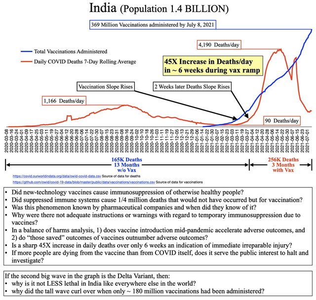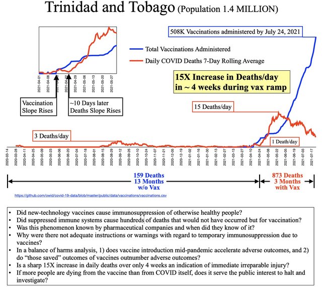 'Flu vaccine ~ 900M doses and 1,951 deaths. Covid vaccine ~ 200M doses and 13,627 deaths. That makes the covid vaccine ~ 30x more lethal than the flu vaccine, with the IFRs (Infection Fatality Rate) being fairly comparable