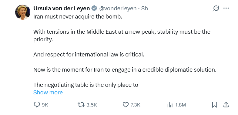 Prime Minister Carl Bildt forthrightly stated: the U.S. attack was a clear-cut violation of international law. The U.N. Charter prohibits the use of force except in self-defense against an imminent attack or with Security Council authorization — neither of which applied in this case. Yet the current EU leadership, so vocal in condemning Russia’s breaches of Ukraine’s sovereignty, remains conspicuously mute when Washington or Jerusalem does the same.