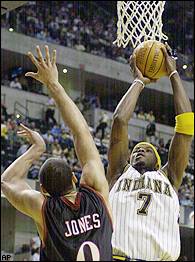 Indiana je poput Bucska morala pobijediti no u slučaju pobjede Bucksa nad Detroitom, Pacersi bi ispali iz playoffa zbog lošijeg međusobnog omjera. No Pacersi su protiv Sixersa odigrali onako kako igra momčad koja se bori za playoff te su osigurali osmu poziciju. "Ovo su bila dva teška tjedna. Nadam se da ćemo iduće godine mi biti ti koji će čekati koja će osmoplasirana momčad igrači protiv nas", rekao je Jermaine ONeal (18 koševa, 7 skokova). Pacersi su sezonu završili sa pet uzastopnih pobjeda i to im je najdulji pobjednički niz ove sezone.
