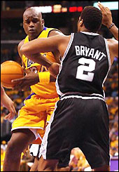 Los Angeles Lakersi su još jednom podsjetili San Antonio Spurse na bolne prošlogodišnje trenutke i metlu u konferencijskom finalu. Ali ovoga je puta možda bilo i bolnije. Spursi su vodili cijelo vrijeme, a Lakersi su zabili samo 32 koša u prvom poluvremenu. Na njihovu sreću igrali su odličnu obranu te su dopustili Spursima da zabiju 38. Phil Jackson je izjavio kako nisu mogli odigrati gore. I uistinu tako je bilo jer je pravi šok tek uslijedio. Početkom drugog poluvremena ozlijedio se Shaquille ONeal te je otišao u svlačionicu no Lakersi su odigrali impresivno i održali se u igri. Početkom četvrte koljeno je ozlijedio Kobe Bryant i upravo kad je on krenuo prema svlačionici u igru se vratio Shaq: "U svlačionicu me nazvao otac - vjerojatno je znao o čemu razmišljam. Rekao mi je da dignem dupe i izađem. Prst mi je bio ukočen, osjećao sam kao da ga nema. No njegove su me riječi ponovno istjerale na parket."