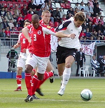 Domaća momčad svladala je u Mainzu Švicarsku s 2:1. Iako su Švicarci preko Vonlanthena imali prvu izrazitiju prigodu, poveli su Nijemci preko Benjamina Auera u 21. minuti. Zaredale su akcije Nijemaca, no teško su probijali švicarski obrambeni bedem. To im je ponovno pošlo za rukom tek u 63. minuti kada se u strijelce upisao Hitzlsperger. Utješni pogodak, koji je posljednih petnaestak minuta susreta učinio rezultatski neizvjesnim, dao je za Švicarsku P. Degen u 75. minuti.