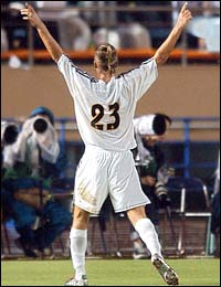 U drugom dijelu Real igra puno bolje i kao kruna dobre igre stiže prekrasan pogodak Davida Beckhama u 61. minuti. Do kraja susreta gosti opasno prijete, ali Real uspijeva zadržati prednost. Real ponovo nije igrao dobro. Sve što je bilo vrijedno spomena u njihovoj igri dogodilo se u prvih 15 minuta drugog dijela. Ostalo razdoblje proteklo je u nezanimljivoj igri uz pokoji bljesak Osasune, pogotovo što se susret više bližio kraju.
