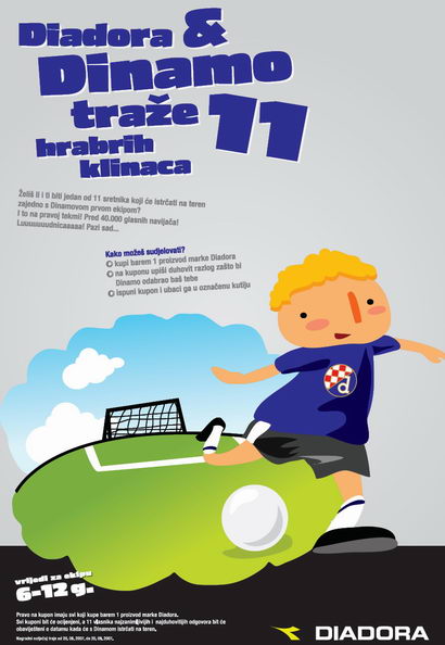 Nagradni natječaj vrijedi za ekipu od 6 do 12 godina i traje od 20. kolovoza do 20. rujna 2007. godine. Pravo na kupon imaju svi koji kupe barem 1 proizvod marke Diadora. Svi kuponi bit će ocijenjeni, a 11 vlasnika najzanimljivijih i najduhovitijih odgovora bit će obaviješteni o datumu kada će s Dinamom istrčati na teren.