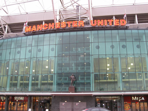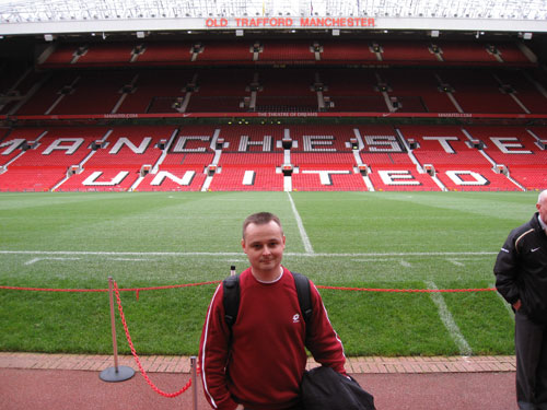 Izlaskom na sjevernu tribinu ovog velikog zdanja na pamet vam pada jedna pomisao: izgleda manje nego na televizijskom ekranu. Širokokutni objektivi kamera često znaju prevariti pa vas kompaktnost stadiona i blizina travnjaka te susjednih tribina poprilično iznenadi, posebno ako ste samo dan prije imali prilike iznutra i izvana upoznati Wembley, koji čak i uživo izgleda nevjerojatno velik. Putujući beskonačnim redovima crvenih sjedala oči vam se zaustavljaju na Stretford Endu, najvećoj tribini i domu najvjernijih Unitedovih navijača, s koje čak i kada nema utakmice vise njihovi transparenti.