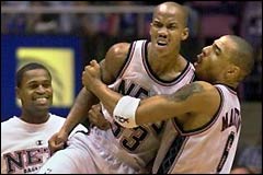 Nitko nije očekivao da bi New Jersey mogao svladali Philadelphiju iako se utakmica igrala u dvorani Netsa. No i to se desilo. Stephon Marbury (34 koša, 9 asistencija) je odigrao jednu od najboljih utakmica ove sezone, a iako je Allen Iverson zabio 32 koša, Marbury ga je odlično čuvao premda je Iverson gađao 30% (9-30) iz igre. uz Marburya odličnu partiju pružili su Kenyon Martin (20 koševa, 11 skokova, 4 blokade) i Keith Van Horn (20 koševa, 7 skokova). Obrana Sixersa je u potpunosti zakazala u četvrtoj četvrtini kada im je New Jersey zabio 34 koša. "Umorni smo. Svi smo umorni. Znate da nešto nije u redu kada sam ja umoran", rekao je Iverson koji je zabio samo dva koša u četvrtoj četvrtini. No glavni krivac za umor početne petorke je trener Larry Brown. Brown jako malo koristi klupu, a u zadnjih par utakmica svaki igrač iz početne petorke igrao je najmanje 40 minuta. Brown malo rotira, a to bi ga moglo koštati još koji poraz od lošijih momčadi kakva je New Jersey. "Ovo je pravo čudo. Puno smo tražili od naših igrača. Tražili smo da dosta njih igra previše minuta. Oslonjavali smo se na Allena koji je ispucao 30-35 lopti po utakmici. Trebamo Matta Geigera i Erica Snowa. Moramo izdržati do All Star vikenda", rekao je Brown. Naredne utakmice igraju kod kuće, a u goste im dolaze Denver i Houston. Neće biti lako. Theo Ratliff (22 koša, 12 skokova, 8 blokada).
