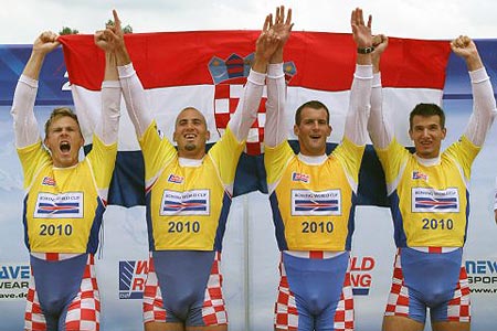Dvostruki svjetski prvaci do 23 godine i ukupni pobjednici ovogodišnjeg Svjetskog kupa nakon što su osvojili i Bled i München i Luzern u Montemor-o-Velhu su osvojili srebrnu medalju. U sastavu David Šain, Martin Sinković, Damir Martin i Valent Sinković hrvatska je posada na prolazu na 500 metara bila četvrta (1:24,77), na 1000 metara je pala za jednu poziciju (2:55,08) i ostala peta i na 1500 metara (4:25,10) samo da bi u posljednjih 500 metara povukla i prestigla redom Nijemce, Talijane i Ruse za drugo mjesto.