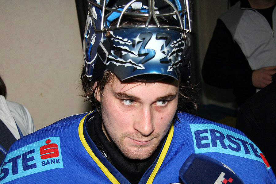 Robert Kristan još je jednom oduševio punu Ledenu dvoranu Doma sportova. Bečani su prema njemu uputili 46 udaraca, a slovenski je vratar obranio njih 45.