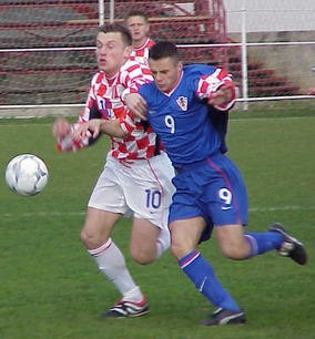 Druga momčad Hrvatske mlade reprezentacije dominirala je većim dijelom utakmice. Počeli su agresivno i već u petoj minuti Igor Budan pogađa stativu. U nastavku akcije udarac je oprobao Klasnić, ali je Sunara odlično obranio. U 12. minuti Pavličić dovodi svoju momčad u vodstvo. Nakon odličnog prodora po lijevoj strani Polovanec je ubacio loptu prema drugoj stativi, lopta je vraćena u sredinu te Pavličiću nije bilo teško postići gol. Na drugoj strani u 15. minuti Mate Bilić je pokušao iznenaditi Tapalovića udarcem sa dvadesetak metara međutim rezultat je ostao nepromijenjen. "A" momčad Hrvatske pokušavala je samo udarcima iz daljine. Upravo jedan takav urodio je pogotkom u 20. minuti kada je Šerić s 18 metara fantastično pogodio desne rašlje protivničkog vratara. Samo minutu nakon toga igru je zbog ozljede napustio Budan, a zamijenio ga je Frane Petričević. U 33. minuti u prilici se našao Sabolčki, ali rezultat na semaforu se nije promijenio. U 35. minuti "B" ekipa ponovno dolazi u vodstvo. Ovoga puta akcija se odvijala na desnoj strani. Ogroman dio posla je obavio Balatinac, zatim je proigrao Petričevića koji sa 13-14 metara plasira loptu u lijevi doji kut Sunarinog gola. U 45. minuti priliku je imao i Leko ali njegov udarac odlazi pokraj gola.