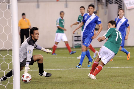 Branitelj naslova, reprezentacija Meksika, u polufinale se plasirao pobjedom nad Gvatemalom. Do slavlja su stigli možda i teže od očekivanog, a pobjedu im je osigurala mlada zvijezda Manchester Uniteda Javier Hernandez - Chicharito, atraktivnim pogotkom u 66. minuti utakmice. Iznenađujuće su poveli nogometaši Gvatemale već u petoj minuti utakmice preko Ruiza, a taj rezultat zadržali su i do poluvremena. U nastavku utakmice preokret Meksika. De Nigris, koji je i ušao na poluvremenu, izjednačuje rezultat u 48. minuti. Pobjedu Meksiku donosi Hernandez, koji je odličnim udarcem petom svladao protivničkog vratara.