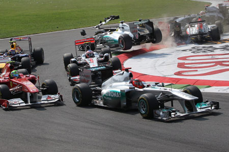 U utrku je najbolje krenuo Alonso koji se probio ispred dvojca Vettel i Hamilton, ali odmah nakon nekoliko odvezenih kilometara, zbog sudara u prvom zavoju, na stazu je ušao i sigurnosni auto, zadržavši se tri kruga. Nakon što se utrka nastavila, Shumacher je prošao ispred Hamiltona, a krug iza i Vettel je dohvatio vodeću poziciju prestigavši Alonsa. Webber je u šestom krugu, pokušavajući što prije stići u boks, izgubio potisak i završio van staze.