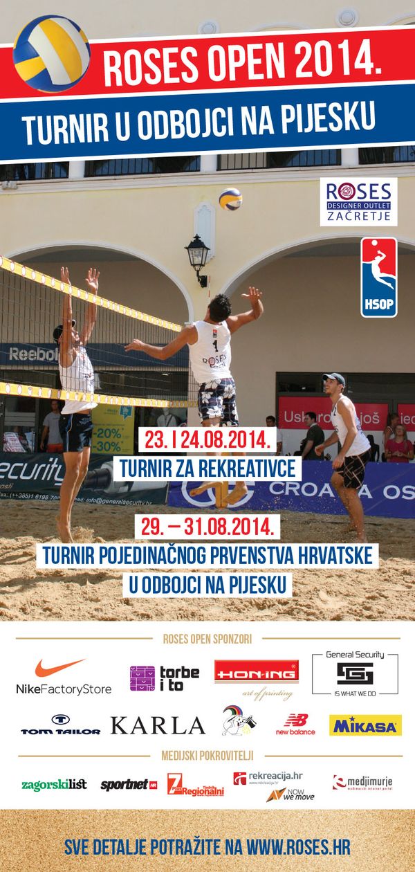 U Roses Designer Outletu u Začretju i ove će se godine od 29. do 31. kolovoza odlučivati o pojedinačnom prvaku/prvakinji Hrvatske u odbojci na pijesku.