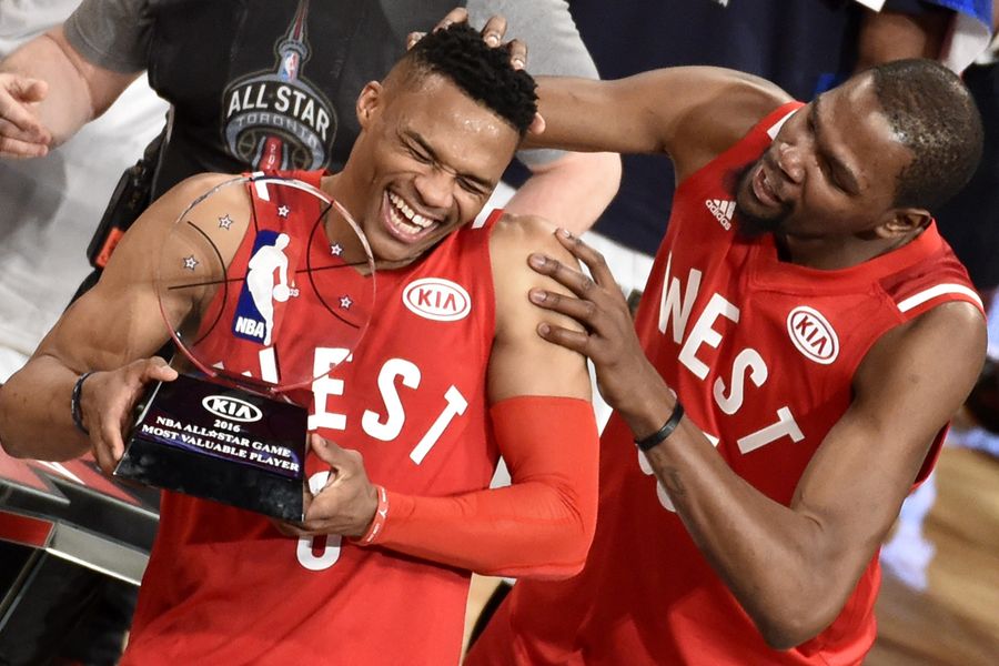 Russell Westbrook (Oklahoma City), koji je sinoć zabio 31 koš, drugi je put zaredom proglašen MVP-jem što je prvi put u 65 izdanja All Stara.