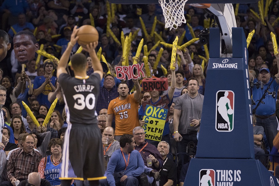 Golden State Warriorsi su nakon produžetka sa 121-118 pobijedili Oklahoma City Thunder, a tricu 0,6 sekundi prije kraja pogodio je najbolji strijelac NBA Stephen Curry. Golden State, koji ima 58 pobjeda od početka sezone postali su prva momčad od 1987./88. i Los Angeles Lakersa koja je osigurala nastup u doigravanju već u veljači. Neizvjesnost oko nastupa u postsezoni uklonjena je oko sat vremena prije Curryjeve trice kada je Houston izgubio od San Antonio Spursa čime je zajamnčeno da Golden State neće završiti niže od osmog mjesta u Zapadnoj konferenciji. Curry je utakmicu završio s 46 koševa, a njegova pobjednička trica bila je 12. na utakmici. Klay Thompson je dodao 32 koša, a Green 14 asistencija za Warriorse.