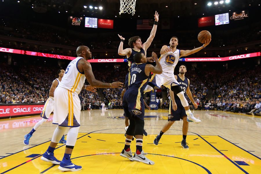Zvijezda Warriorsa Stephen Curry je na svoj 28. rođendan ubacio 27 koševa i to igravši u samo prve tri četvrtine. Zbog velike prednosti njegove momčadi dobio je poštedu u posljednjih 12 minuta. Klay Thompson je dodao 18 poena za pobjednike, dok su Anthony Davis (22, 12 skokova) i Toney Douglas (22) bili najbolji kod Pelicansa.