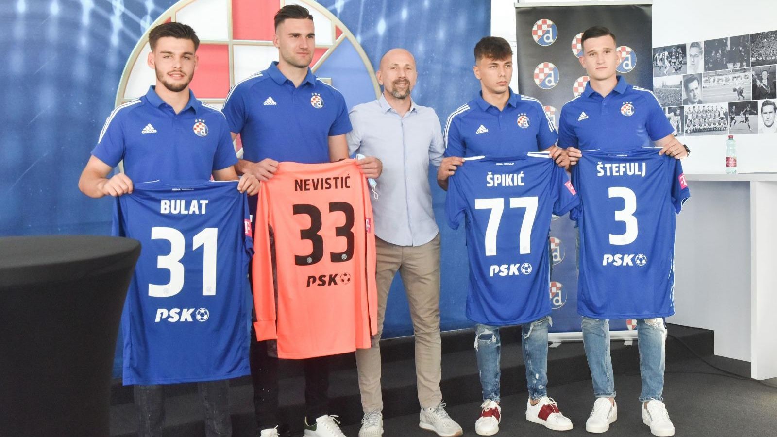 Sportski direktor i glavni trener Damir Krznar predao im je dresove s njihovim imenima i brojevima i zaželio dobrodošlicu u Dinamo. Uslijedilo je fotografiranje novih igrača pa zatim izjave za medije.