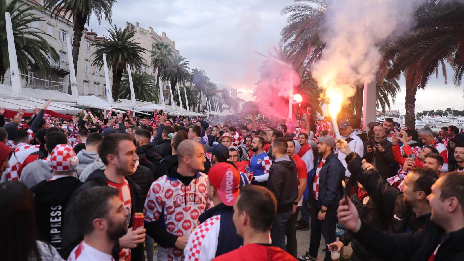 Navijači su napunili Split, atmosfera je već dobrano zagrijana i sve je spremno za spektakl na Poljudu. Ogroman broj navijača okupio se na splitskoj rivi otkud kreću prema Poljudu, a prilazi Splitu danas bili su zakrčeni kao na vrhuncu turističke sezone...