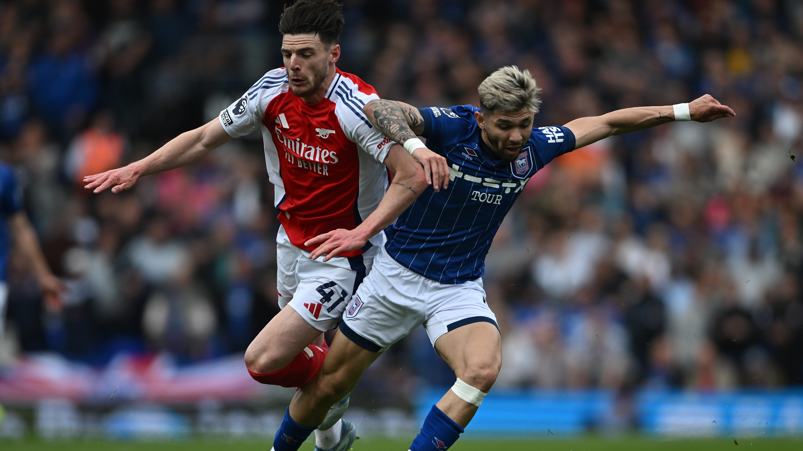 Kod Ipswicha je Arsenal već u prvih pola sata došao do dva pogotka zahvaljujući Leonardu Trossardu i Gabrielu Martinelliju da bi odmah nakon toga Leif Davis zaradio isključenje.
