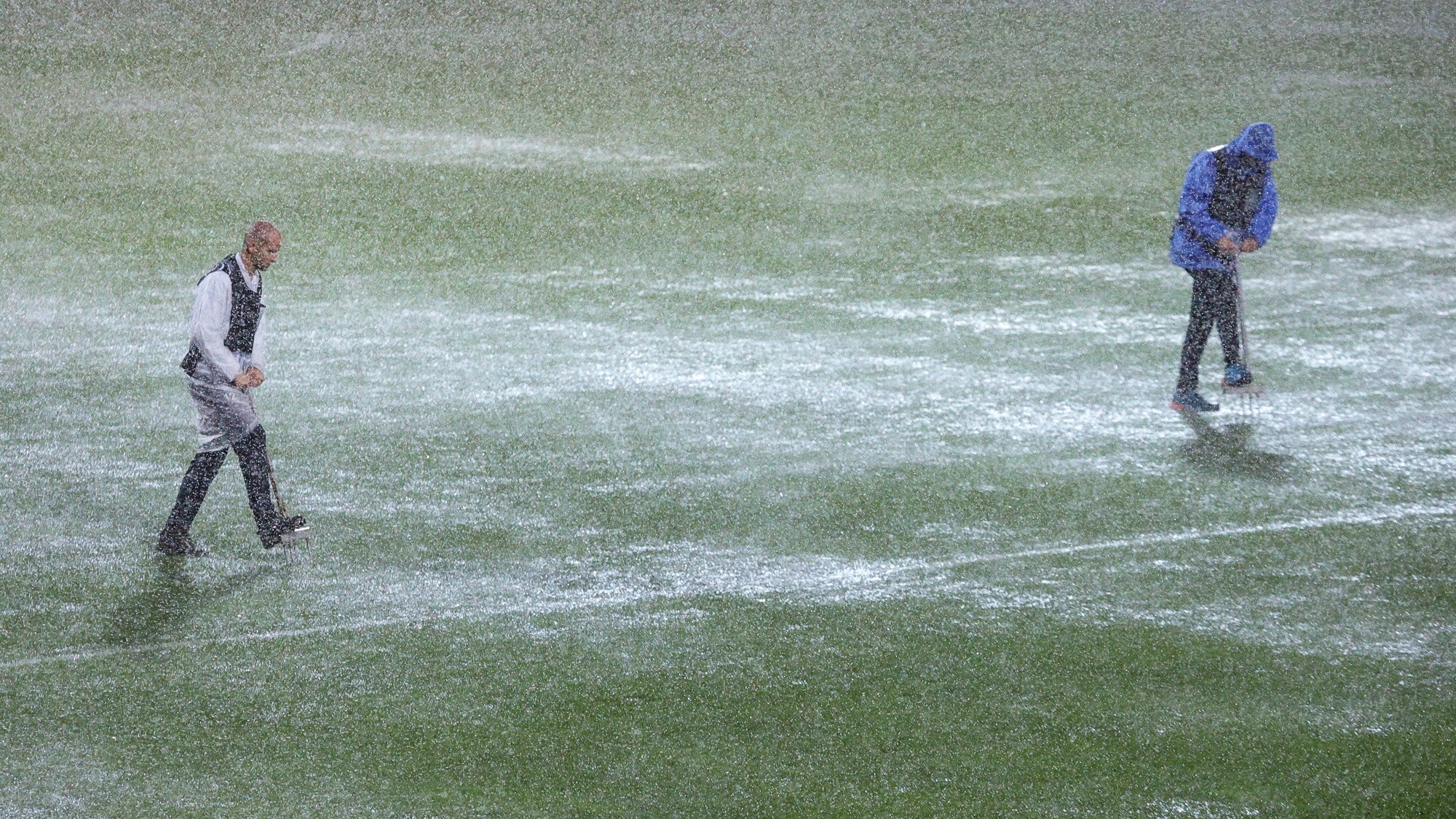 Rijeka i Sparta počeli su svoj susret drugog kola Konferencijske lige na Rujevici u 18:45, ali jaka kiša padala je još i prije zagrijavanja, uvjeti su postajali sve teži i sudac Robert Jones prekinuo je utakmicu u 13. minuti. Travnjak je natopljen i bilo je vrlo je upitno hoće li danas biti nastavka...