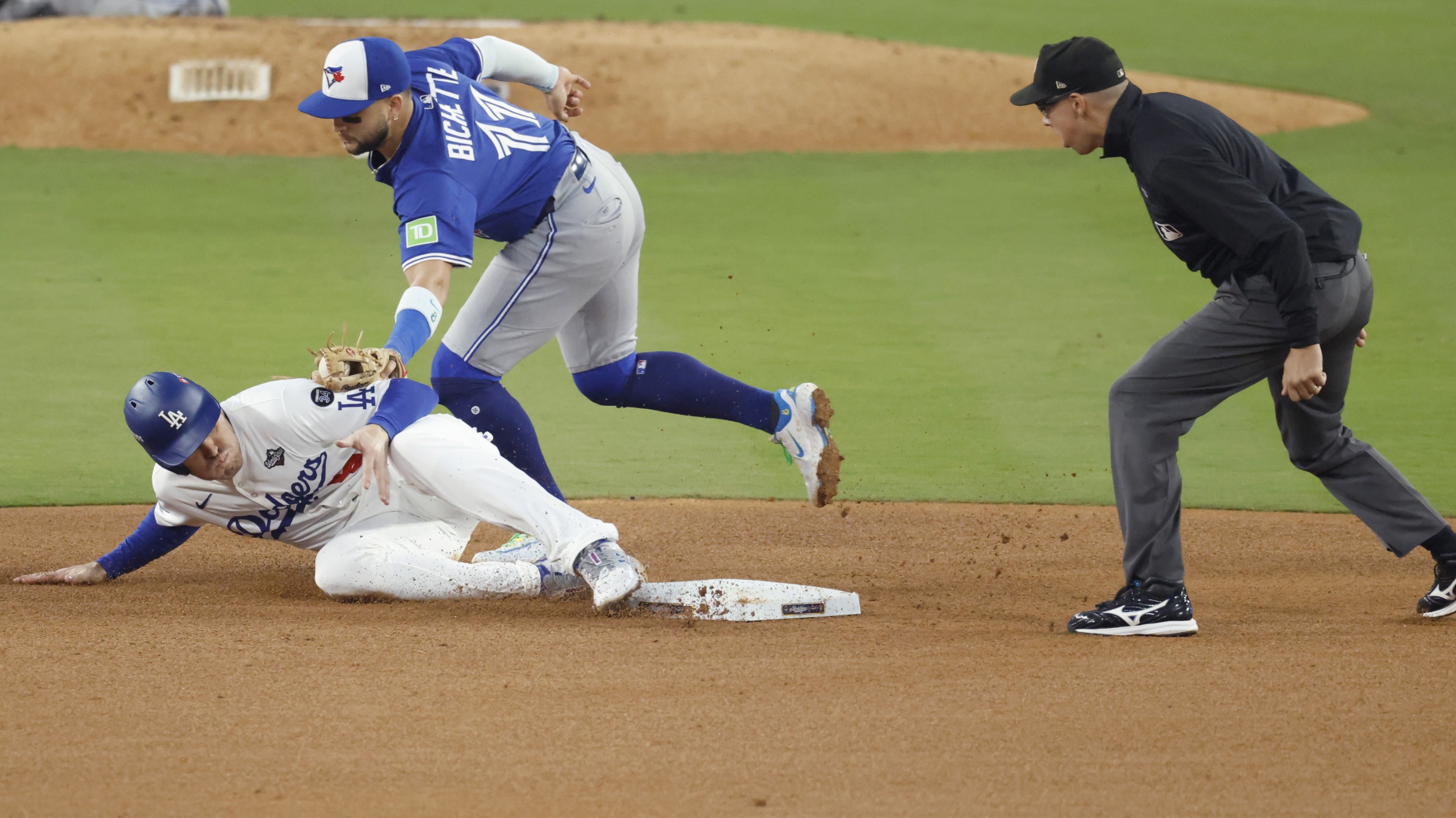 U drugom inningu Teoscar Hernandez donio je prvo optrčavanje Dodgersima, a Shohei Ohtani podebljao je prednost u trećem. Međutim, greška Tommyja Edmana donijela je Kanađanima dva igrača na bazi, a nakon homeruna Alejandra Kirka prešli su u vodstvo od 3:2. Andres Gimenez donio je još jedno optrčavanje Blue Jaysima u istom inningu.