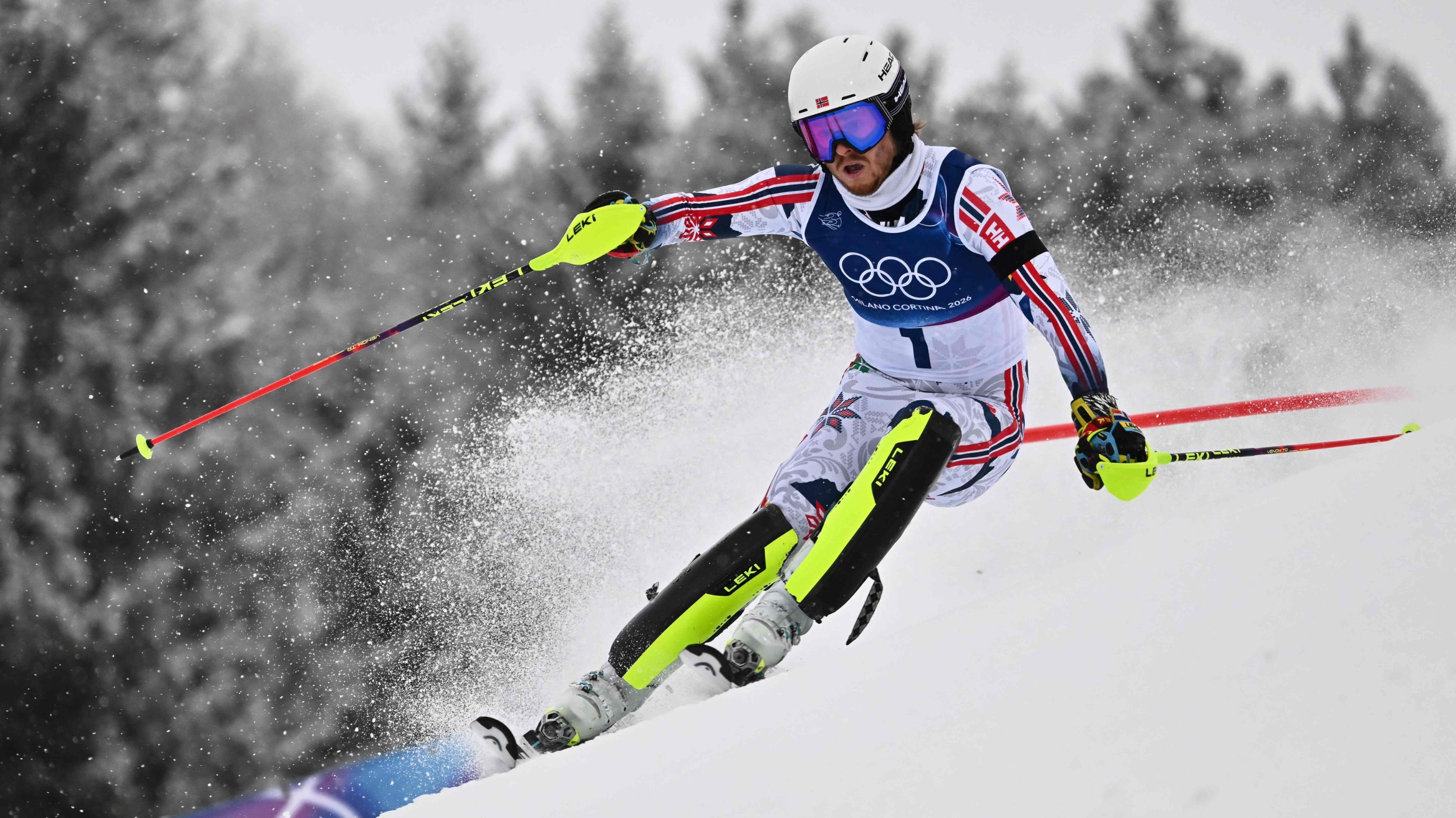 Prva vožnja slaloma na Zimskim Olimpijskim igrama donijela je dobre vijesti za Norvežanina Atle Lie McGratha koji je na korak do prve olimpijske medalje, a ujedno i zlata. Završio je s vremenom 56.14, a prvi sljedeći konkurent mu je Loic Meillard s 59 stotinki zaostatka.