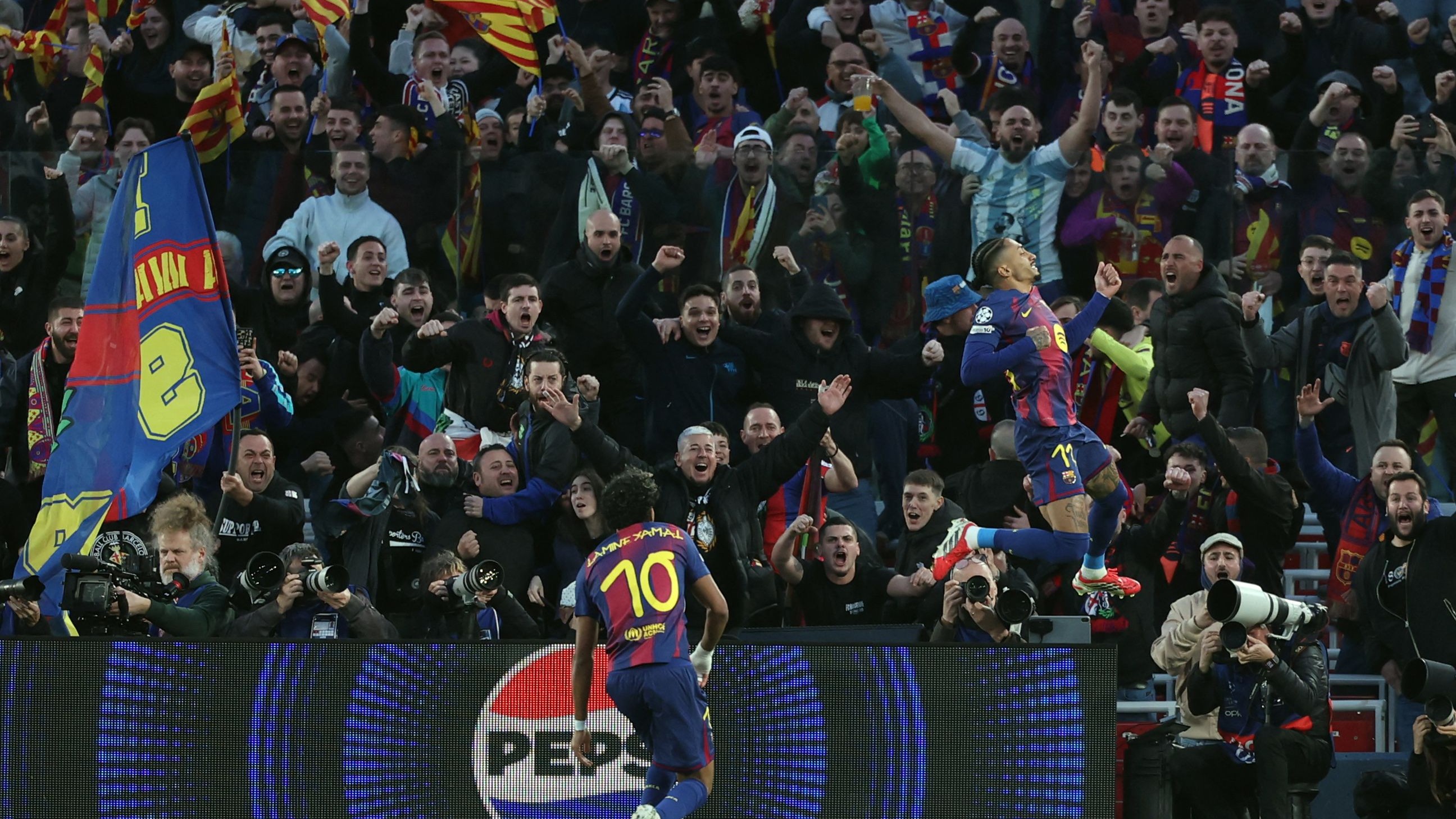 Pet minuta kasnije, ubačaj Raphinhe iz kornera u gol je pretvorio Robert Lewandowski, Poljak je dočekao loptu na drugoj stativi i glavom zabio. Isti igrač povisio je na 6:2, a ovoga puta lijepo ga je uposlio Lamine Yamal.
