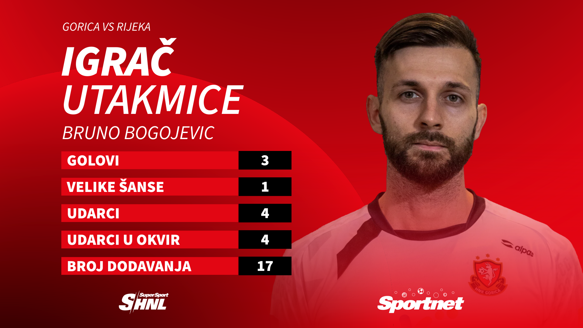 Kao da Riječanima nije bio dovoljan tako težak poraz, morao se umiješati Bruno Bogojević. Upravo iz Rijeke je 27-godišnjak ove zime došao u Goricu, a hat-trick protiv bivšeg kluba zasad su mu jedini golovi u novom.