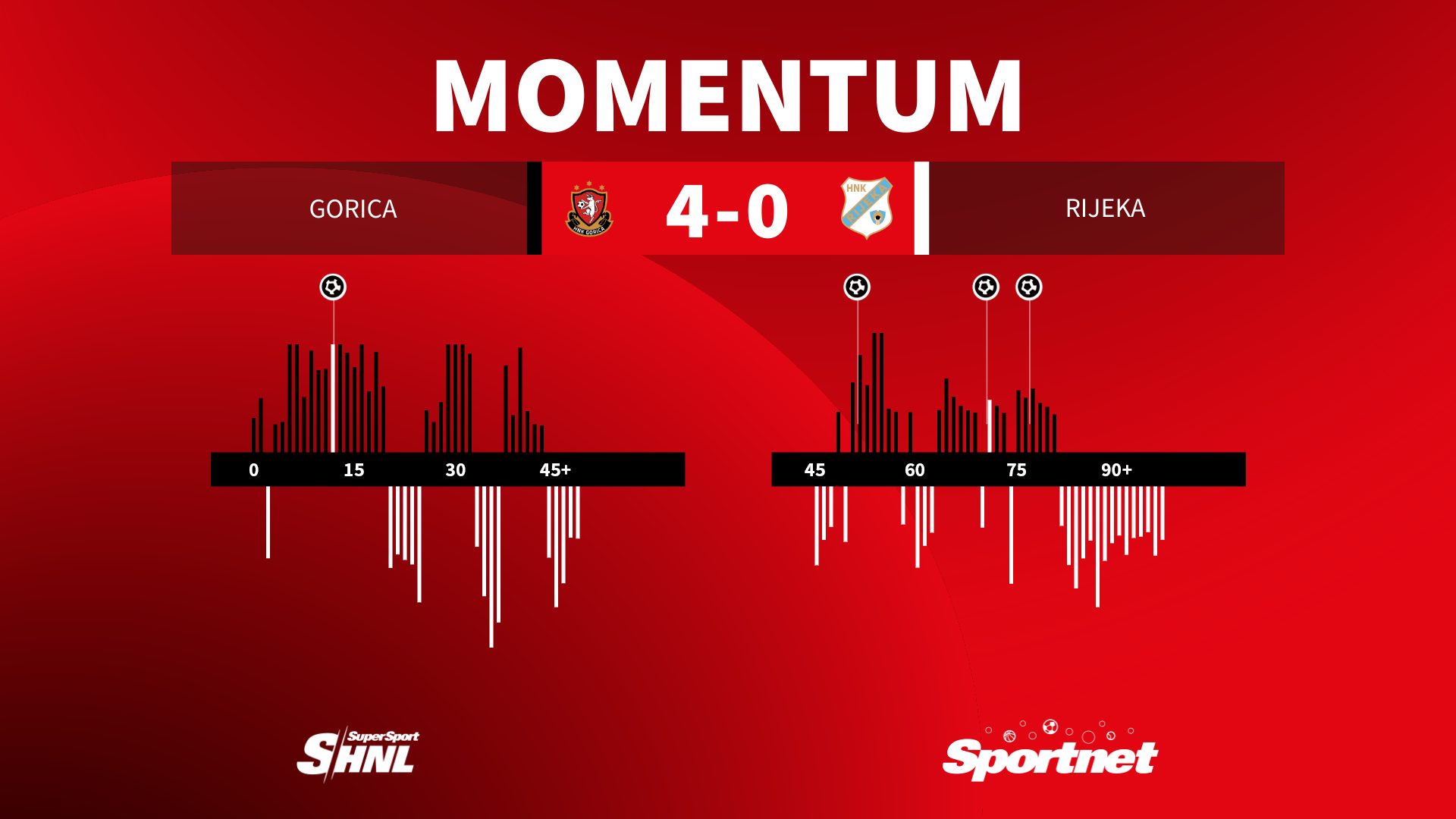 Toliko spomenuta realizacija ovoga puta bila je na vrhunskom nivou jer Gorica je zabila dvostruko više golova, nego što je statistički trebala. Famozni xG pokazuje statističku vjerojatnost koja procjenjuje kvalitetu prilike za pogodak, Gorica je protiv Rijeke po tom segmentu bila na 2,04, a četiri puta je zatresla mrežu.
