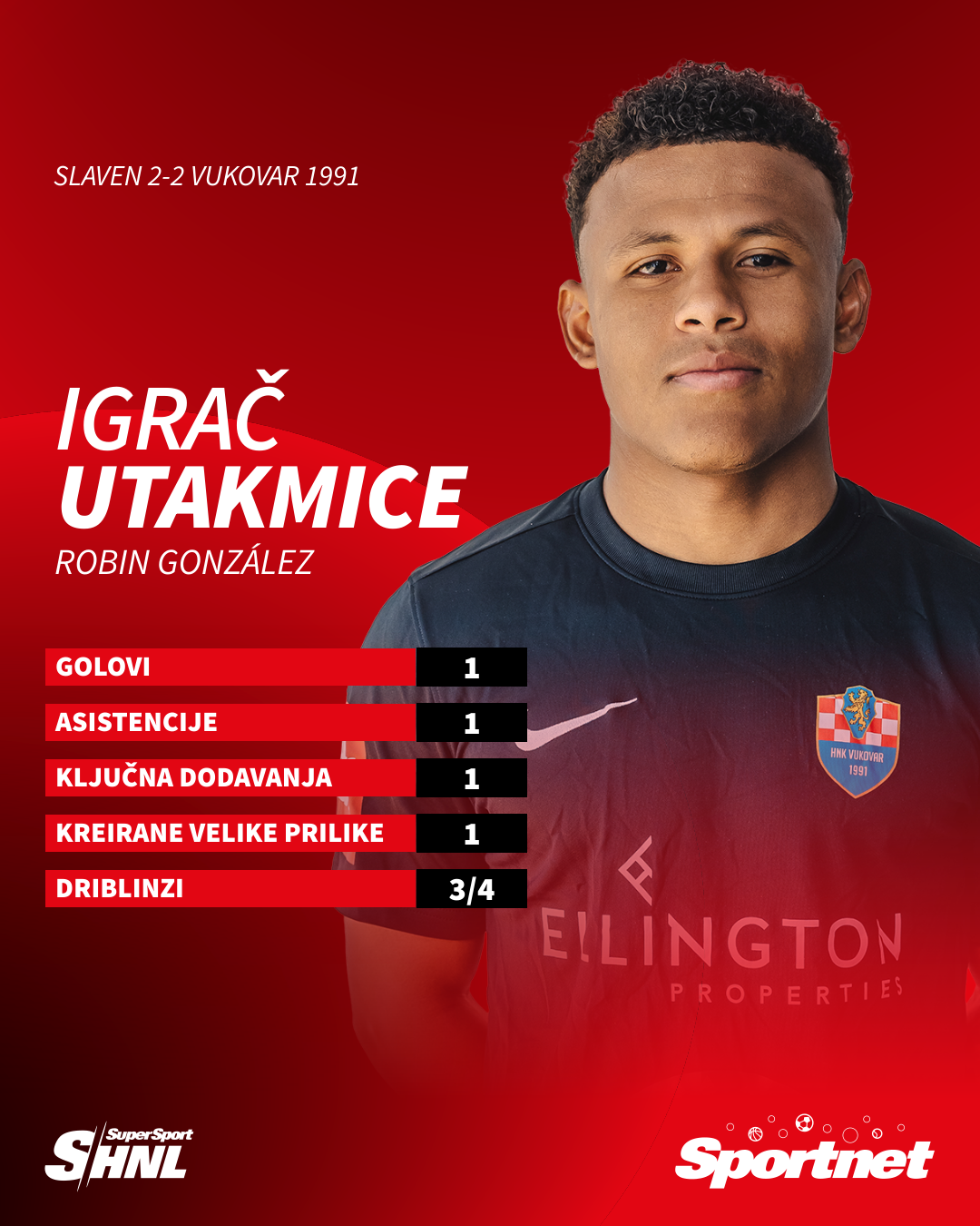 Igrač utakmice: Robin Gonzalez - asistencija i pogodak za remi Vukovaraca